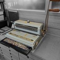 「gamoyon Art labo」にはリング製本機がありまして、要は紙に穴を開けてスチール製のリングを通して製本する機械です。